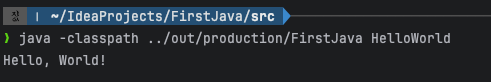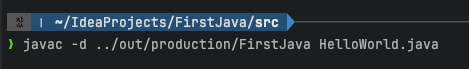 src에 있는 HelloWorld.java 파일은 인텔리제이에서 Run을 하면, javac를 통해, out/production/[프로젝트명] 내부에 HelloWorld.class 파일을 만들어 자동으로 java를 통해 실행까지 해줄 것이다. 우리는 run을 누르지 말고 이를 직접 터미널을 통해 실습해보도록 하자